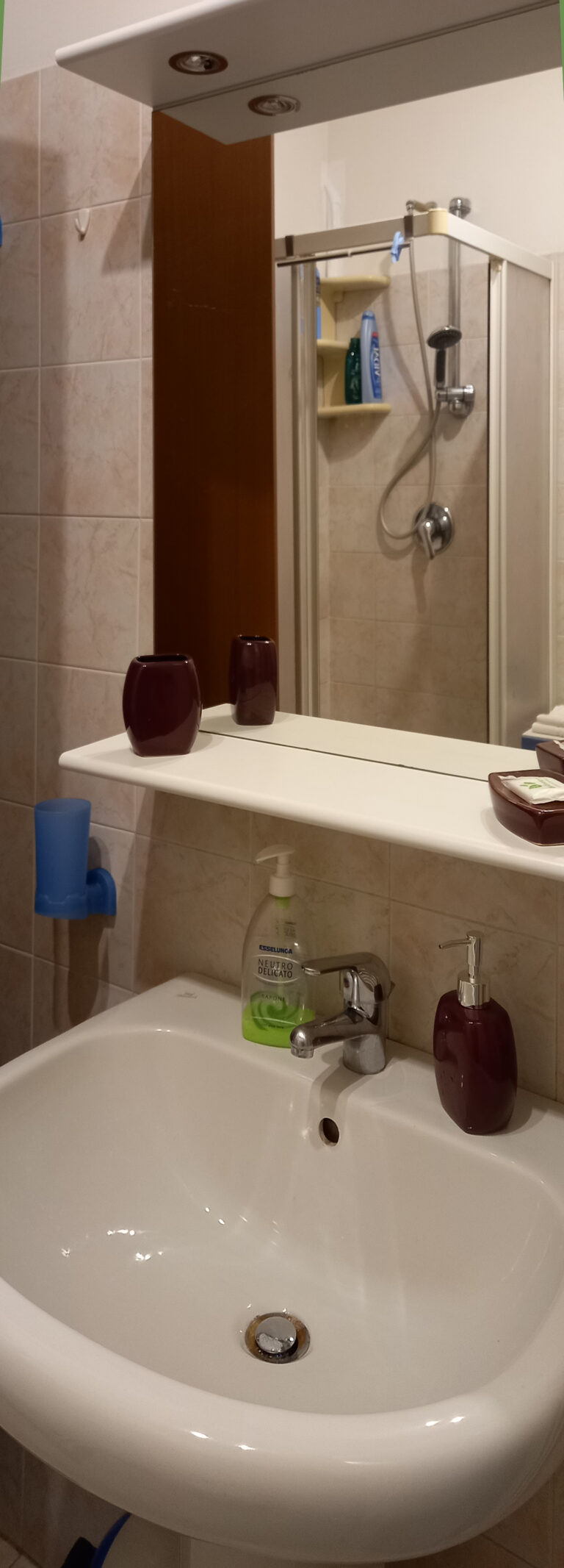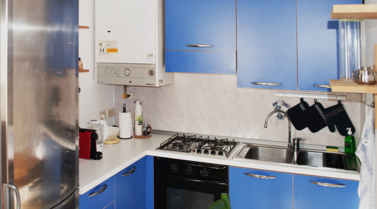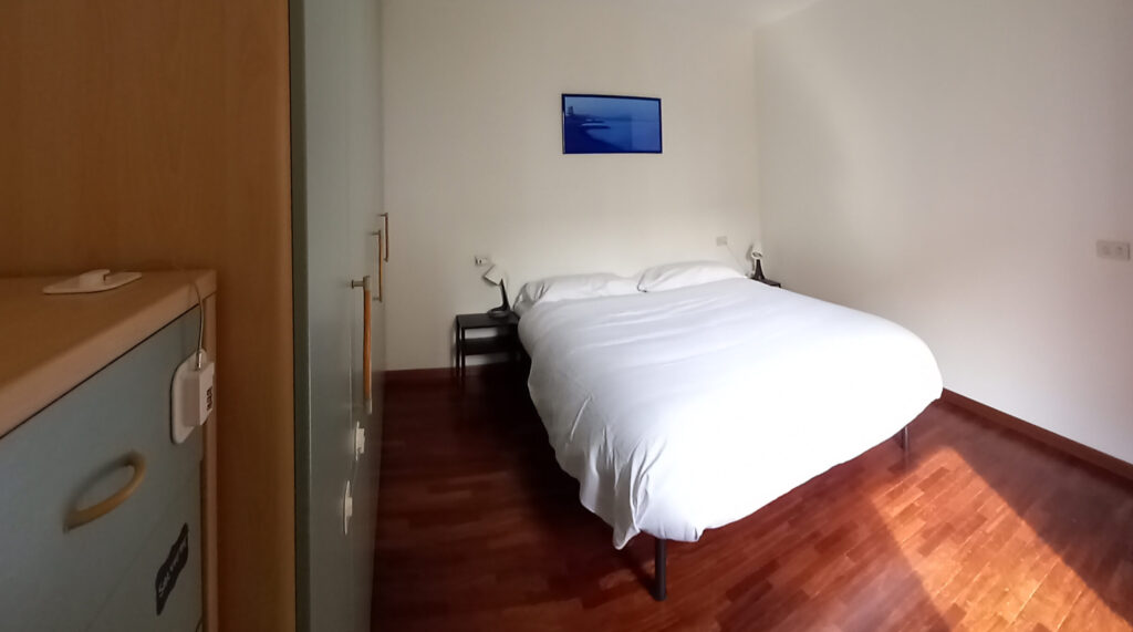 Il salotto è il cuore dell’appartamento: luminoso ed accogliente, è attrezzato con uno smart TV da 28 pollici, una piccola libreria con volumi a disposizioni degli ospiti, e con un divano letto doppio, se avete bisogno di estendere la capacità di accoglienza dell’appartamento sino a 4 persone.